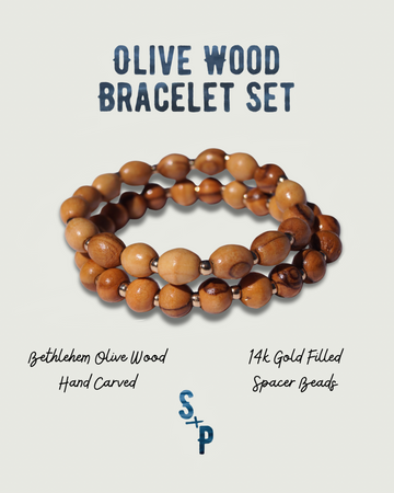 Now available: A limited supply of Olive Wood bracelets constructed from hand-carved wood beads straight from the Holy Land of Bethlehem.