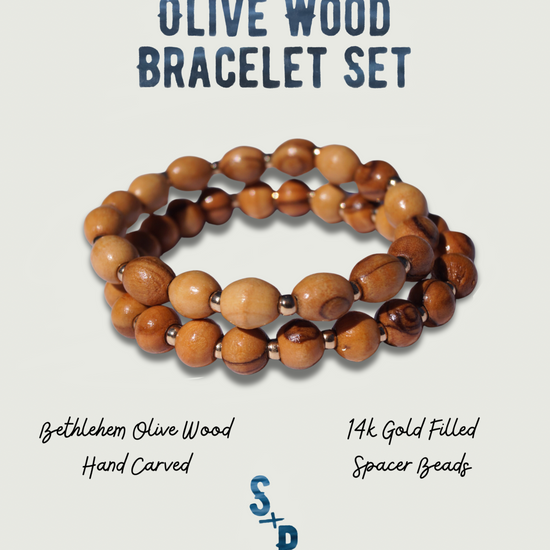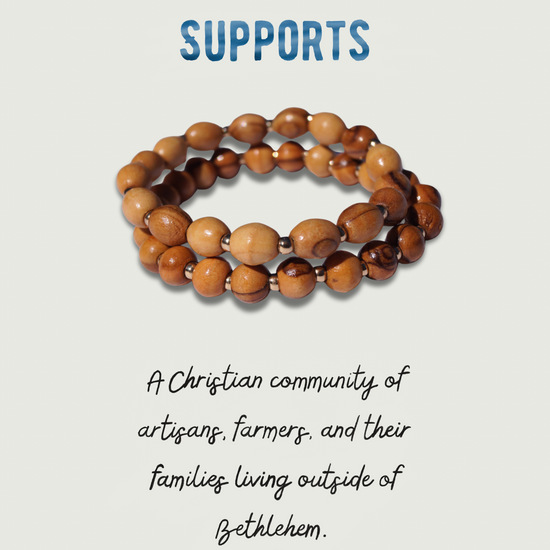 This two-bracelet set carries a story far deeper than jewelry. Each bead is hand-carved from olive wood sourced in Bethlehem, the birthplace of Jesus, where Christian artisans have preserved this sacred craft for generations. The olive branches are carefully pruned (never cut down), ensuring the trees continue to flourish while providing sustainable material.