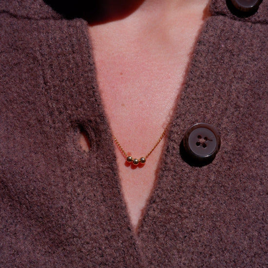 Inspired by the Trinity (Father, Son, Holy Spirit), this three gold beaded chain necklace is a dainty symbol of bold faith.
