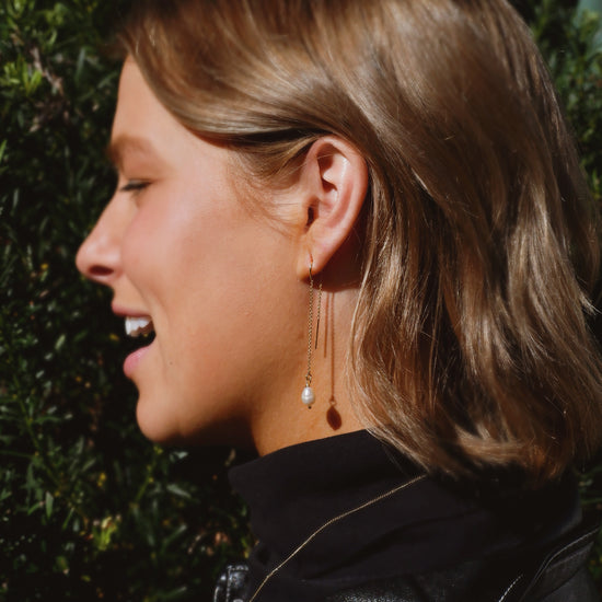 Hailey Threader Pearl Earrings
