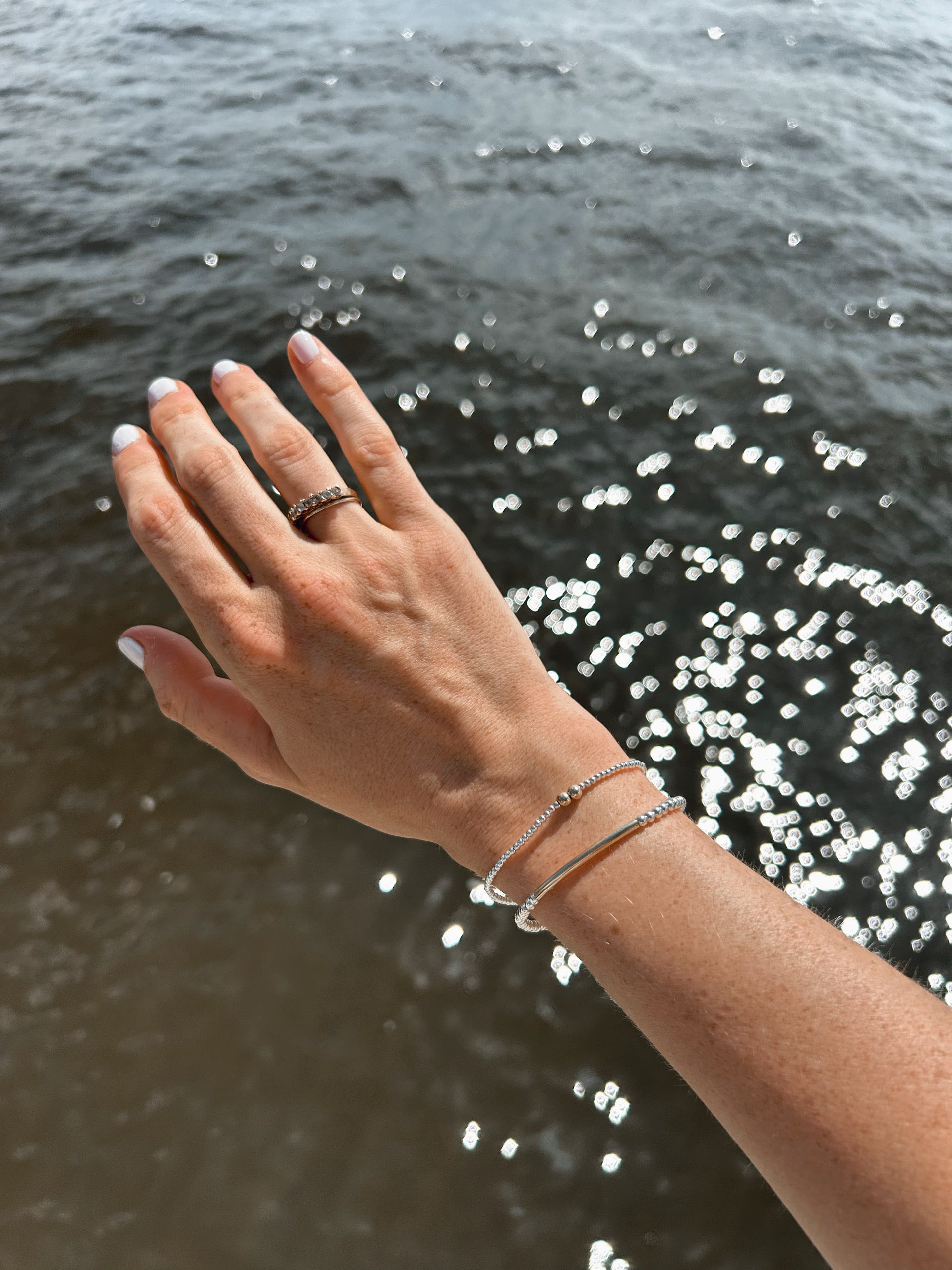 Wear them together for a bold mixed metal moment or pair them with your favorite stack. Made with high-quality stretch cord for easy, comfortable wear—no clasp needed.
