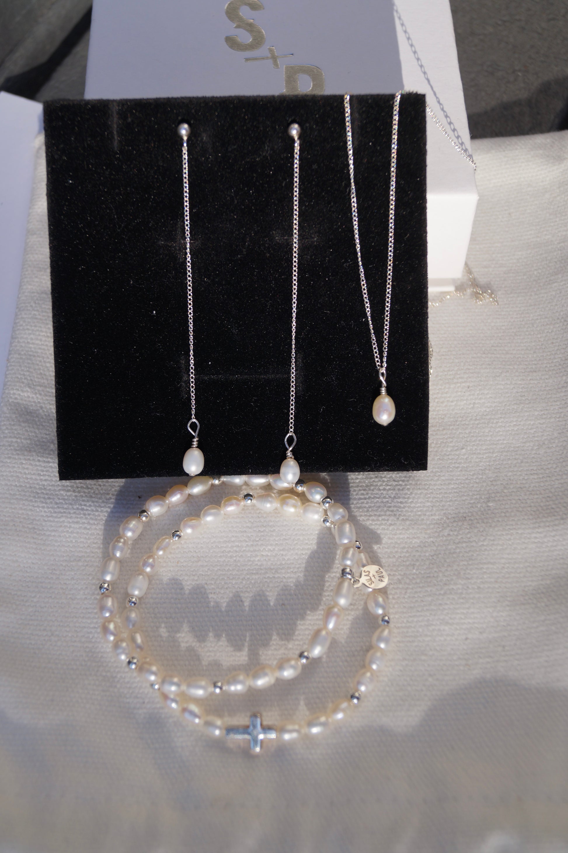 Your pearl staple. Crafted with sterling silver and a small freshwater pearls, these earrings will become your go to for a simple yet elegant accessory.